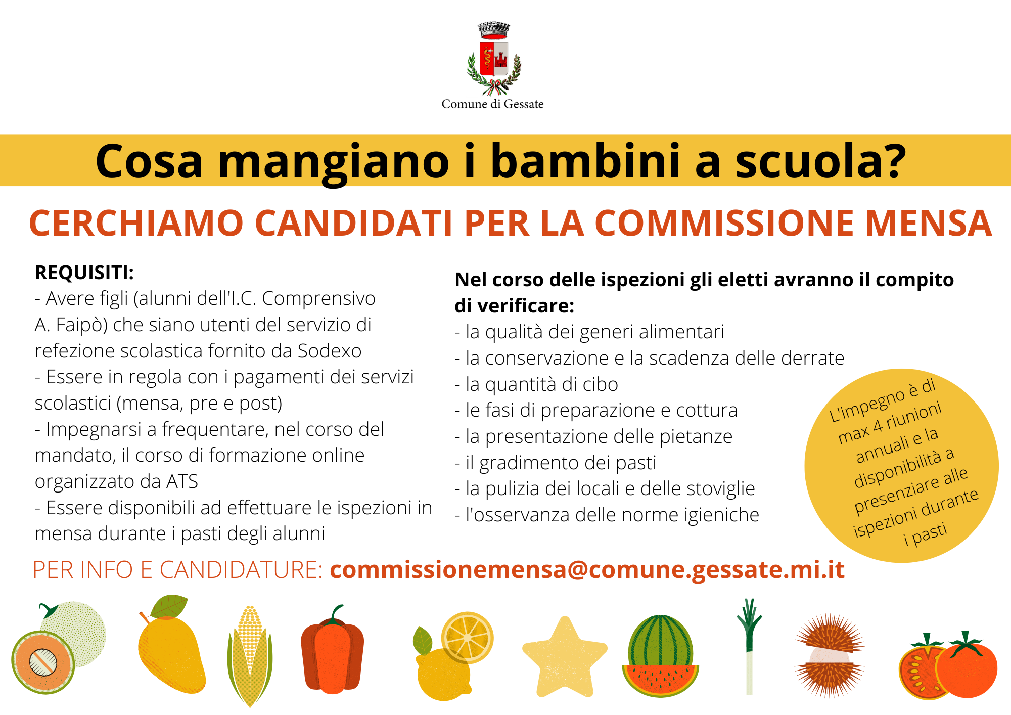 Le elezioni della Commissione Mensa avverranno luogo in concomitanza con le elezioni dei rappresentanti di classe.