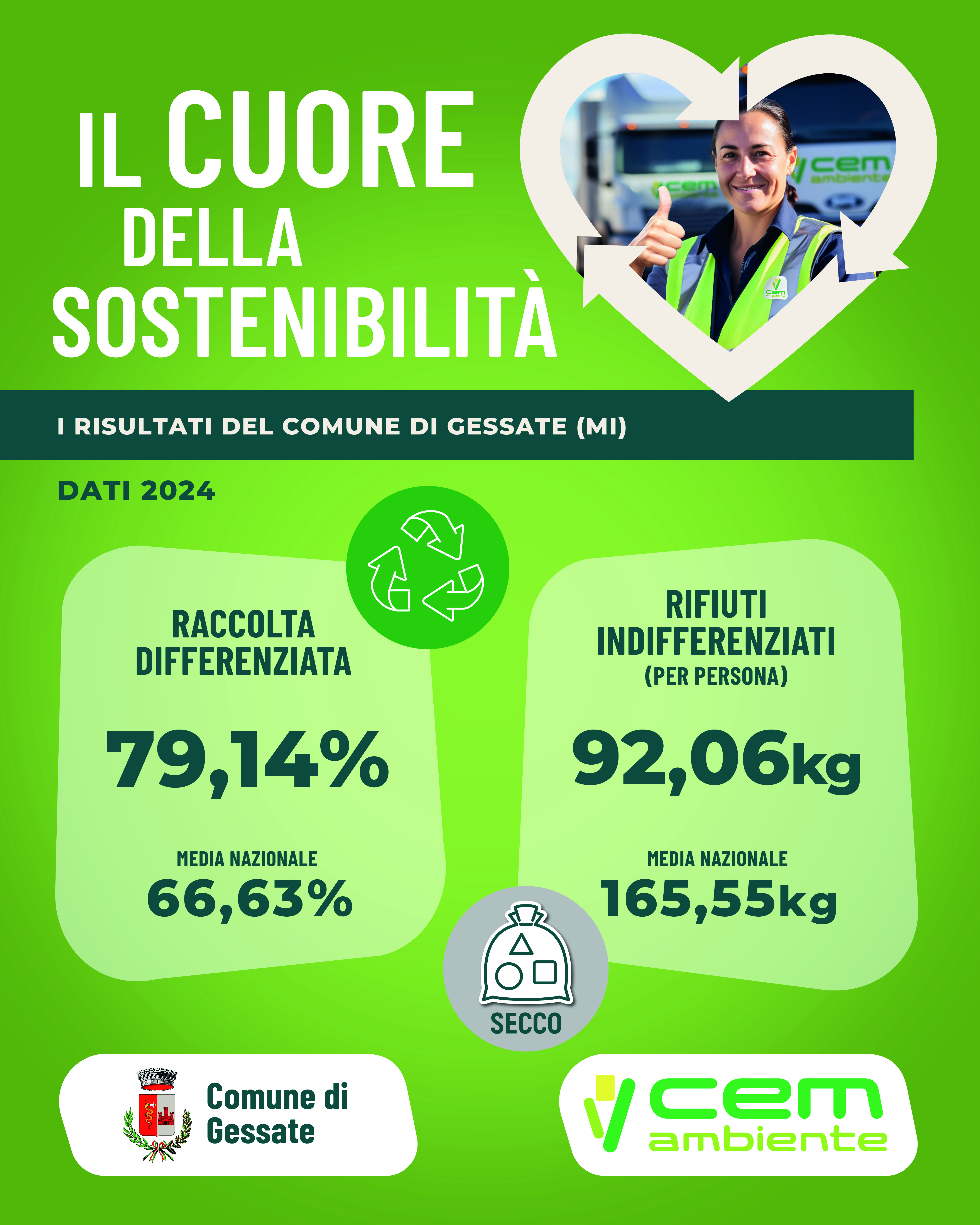 - risultati anno 2024 della raccolta differenziata del Comune Gessate clicca qui