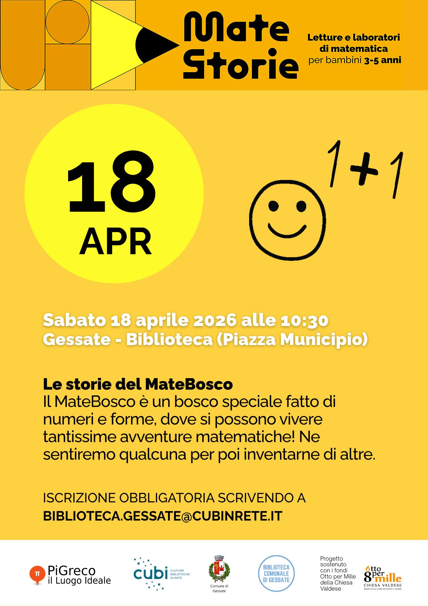 Iscrizione obbligatoria: biblioteca.gessate@cubinrete.it