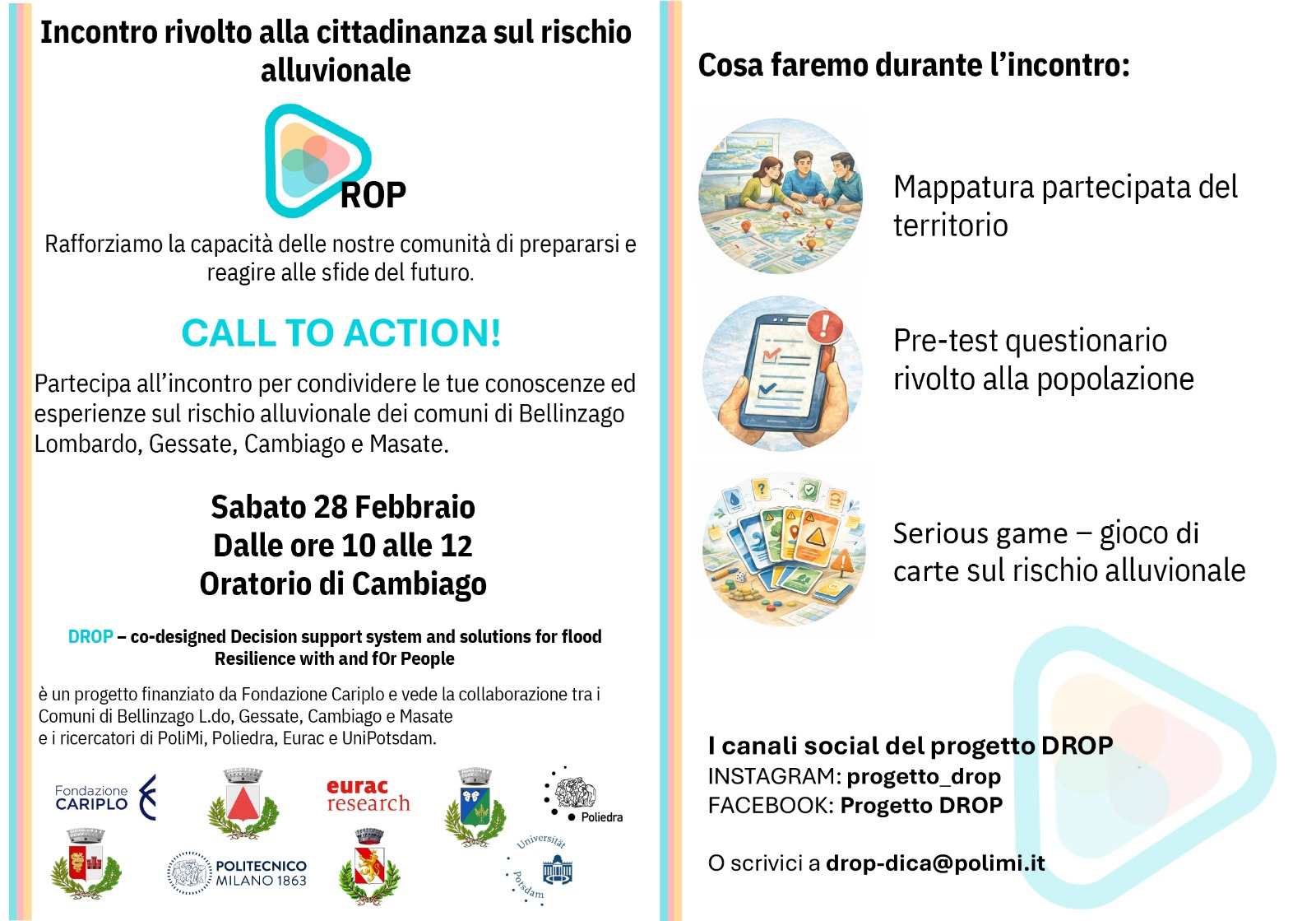 📌 Vi aspettiamo domani, Sabato 28 febbraio dalle ore 10 alle ore 12 presso l'Oratorio di Cambiago insieme ai ricercatori del Politecnico di Milano, dell'Università di Potsdam, di Poliedra e Eurac.